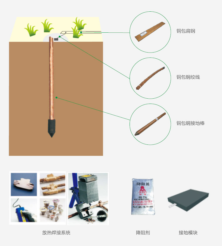 TNR-接地棒采用銅包鋼、鋅包鋼,可以有效的防止鋼棒被腐蝕,用戶可根據環境地質不同選擇同包鋼,銅層厚度,及接地極的類別。