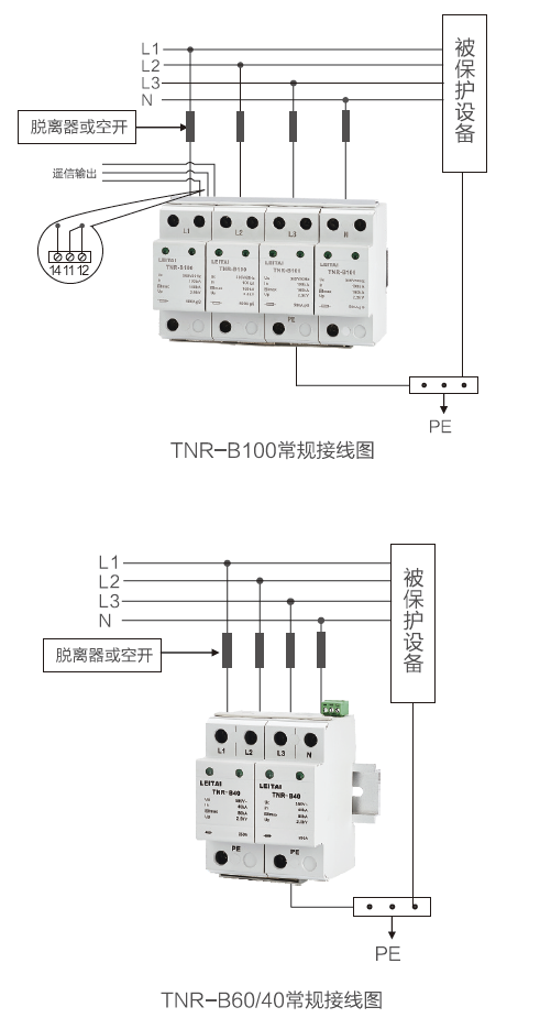TNR-D系列保護適用與電設備末端保護,可安裝在電子電氣設備處,樓層終端配電箱內,信息設備前。
